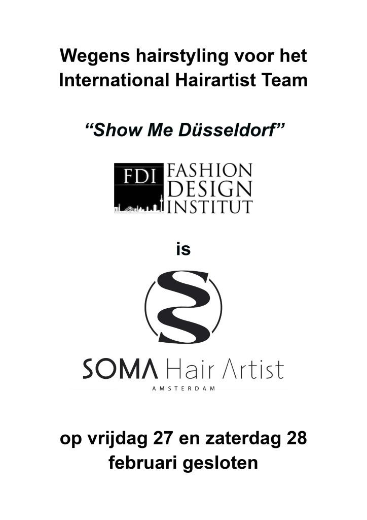 Op vrijdag 27 en zaterdag 28 februari is SOMA Hair Artist gesloten.